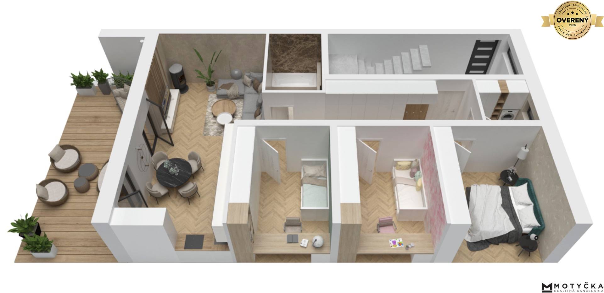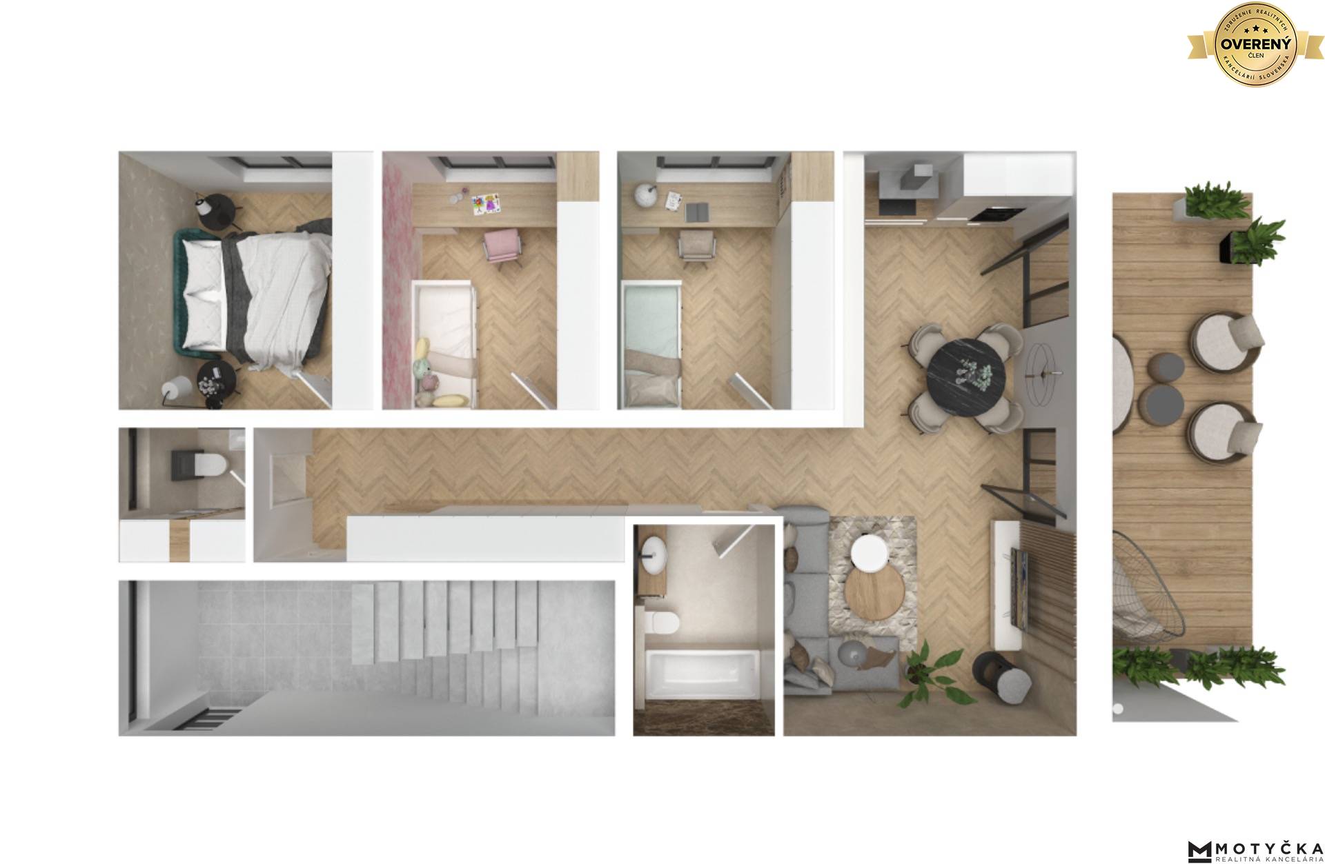 Ideálna úžitková plocha 4-izbových bytov poskytuje ten pravý domov pre rodinu s deťmi, kde si každý člen rodiny bezpochyby nájde svoj vlastný priestor a pohodlie.